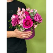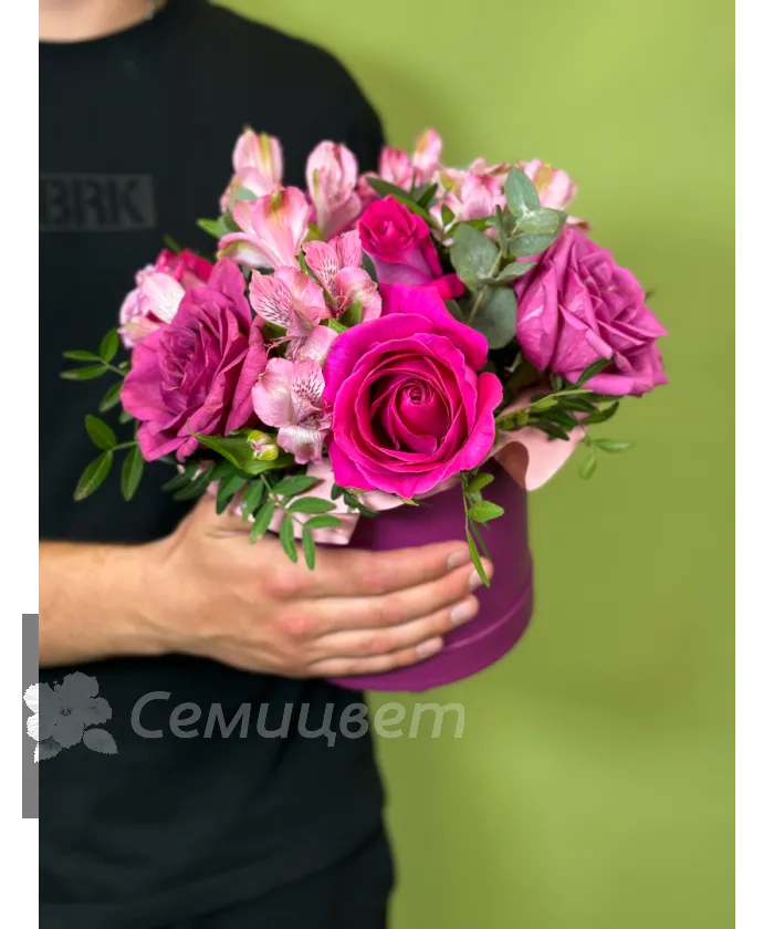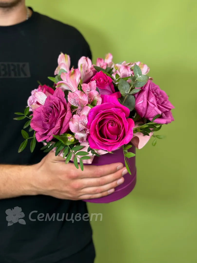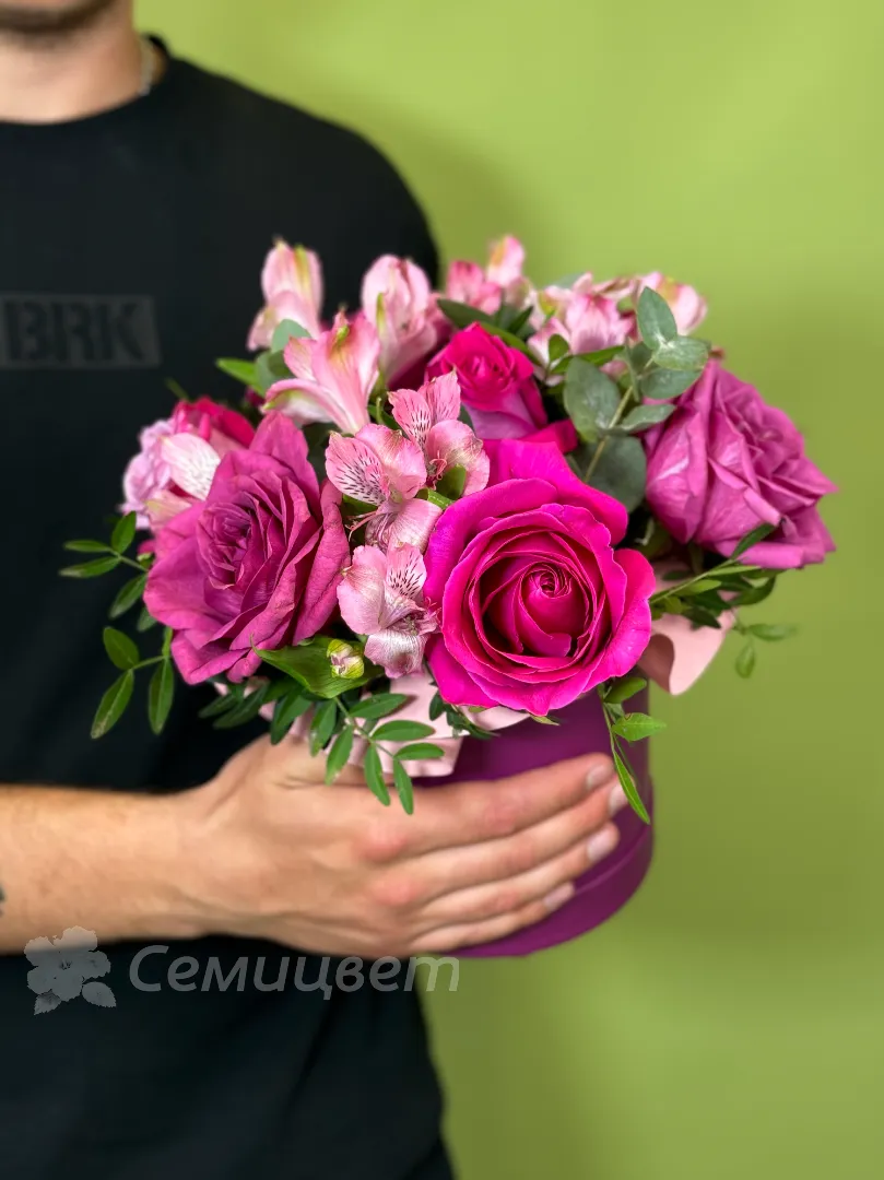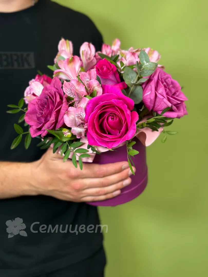 Композиция в шляпной коробке «Малиновый десерт»